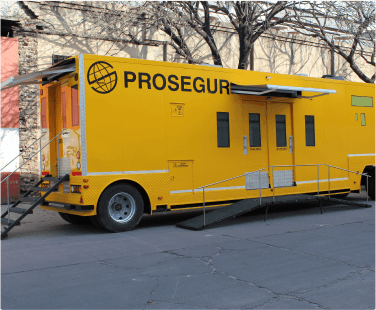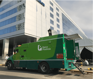 Para las distintas entidades bancarias, desarrollamos bancos móviles blindados que brindan servicio como sucursales y cajeros en distintos puntos del país.