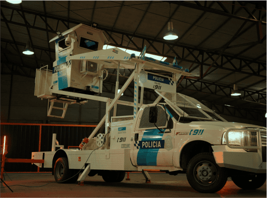 Unidad móvil de vigilancia montada sobre un vehículo blindado. De fácil y rápido traslado, esta torre es ideal para controlar eventos o manifestaciones al aire libre con gran cantidad de personas en donde la vigilancia debe ser más ágil.